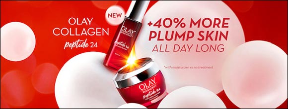 Ingredient-based innovation Collagen is crucial to supple skin. The wrinkle-preventing protein that naturally occurs in our bodies keeps skin plump and youthful. Responsible for smoothing fine lines and wrinkles, it's the skin's structural net, which makes it resilient, strong and elastic. A key ingredient to help maintain your skins morning bounciness and plumpness all day long, Olay’s Collagen peptide is a fragment of the same type of collagen found in human skin. Its formula absorbs into the skin to increase firmness and hydration levels - keeping your skin firm & bouncy all day long. In combination with Olay’s anti-aging formulation, it works like naturally occurring collagen to give you hydrated, bouncier & firmer skin.
